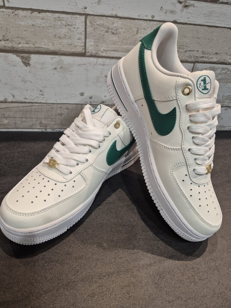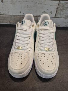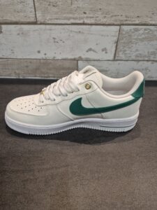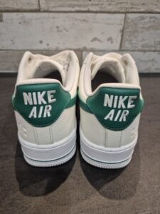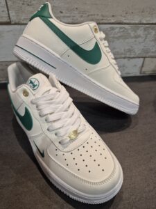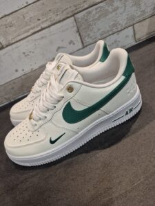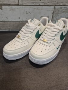 この本体のアイボリーにグリーンのロゴ、ヒールにはホワイトの刺繍でNIKEAIRの文字が際立ちます。ゴールドのディユブレとアイレットが特に気にってます。