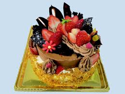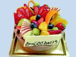 オーダーで作られたお祝いや記念日のホールケーキです。クリームとフルーツの玉手箱です。