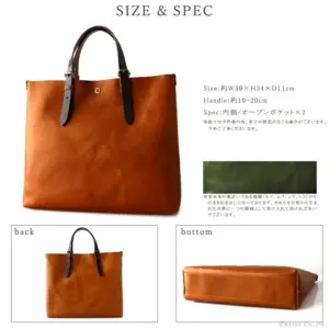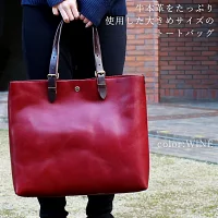 牛本革をたっぷり使用した大き目サイズのトートバッグ